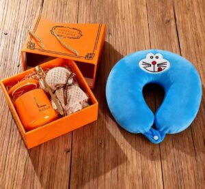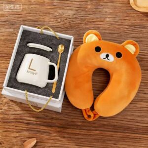 電商標題 萌趣小熊 U 型枕 + 幸運陶瓷杯禮盒 居家辦公出行貼心好物